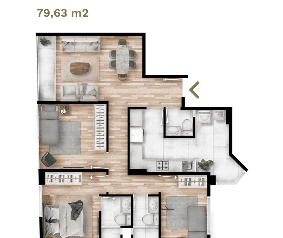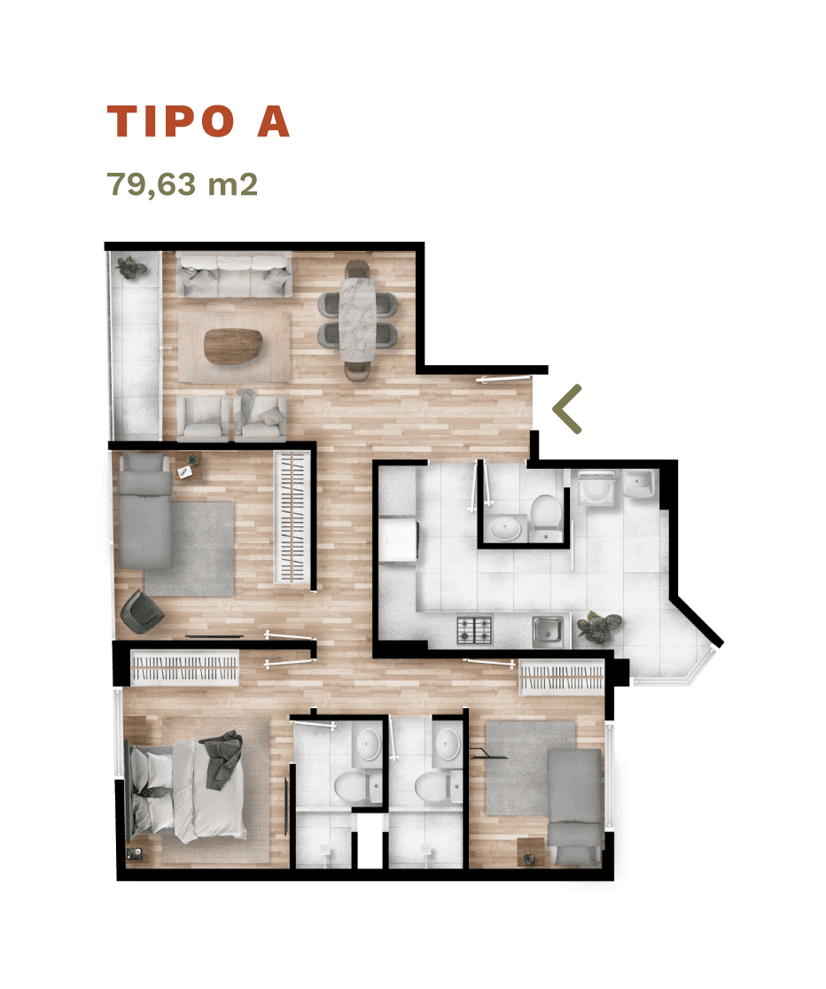 Departamento 3 dorm. flat 79.63m² – “Parques Barrio Médico”